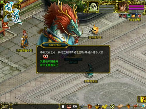 新年马上就要来到拉~伴随着元旦休假,道友们怎么安排呢?在这欢乐吉祥的日子,《问道》吉祥宠在天墉城给大家发放赐福丹,大家赶紧去寻找吉祥宠,领取赐福丹吧!!与玩家一起玩乐,并且将带来丰富的奖励哦~ 《问道》天外飞仙客户端下载:http://wd.gyyx.cn/download 《问道》天外飞仙微端下载:http://hd.gyyx.cn/gameDownload/Default.aspx?typeid=13&netType=1&file=asktao_mini_setup.exe 《问道》天外飞仙官方网站:http://wd.gyyx.cn