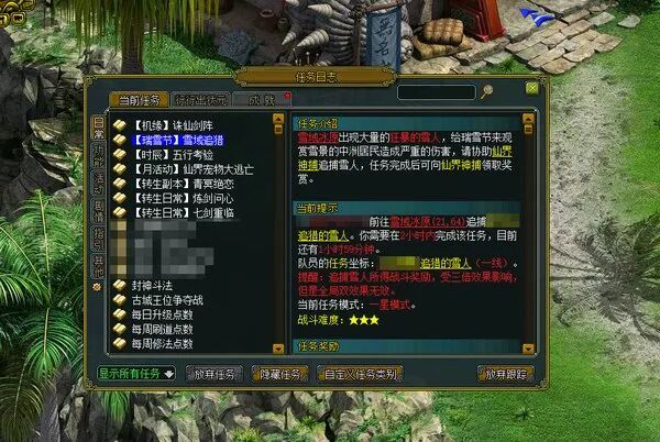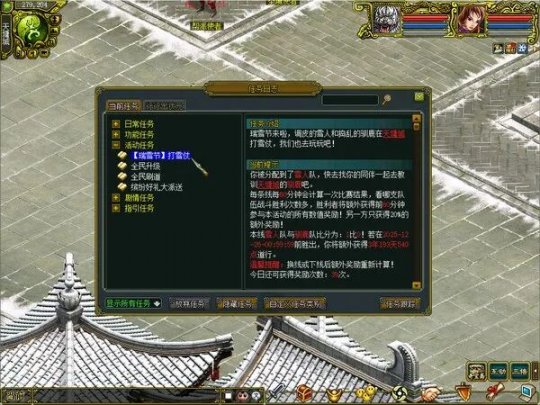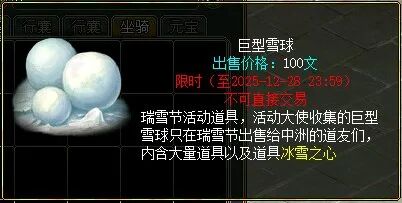 中洲的第一片雪花,已悄然落在天墉城的屋檐上。 一年一度的瑞雪节又到啦! 游戏内也将开启以瑞雪节为主题的限时活动 道友们共赴一场专属中洲的“瑞雪节”盛宴! 参与活动还有丰厚奖励拿! 普通版瑞雪节·雪域追猎 活动时间 12月25日 至 12月28日 活动玩法 活动期间,角色等级≥60级的玩家前往无名小镇,与仙界神捕对话,领取【瑞雪节】雪域追猎任务,在2小时内前往指定地点抓捕雪人,抓捕到所有雪人后可完成任务。 回仙界神捕处交付任务后,有几率获得商城道具奖励。 活动奖励 数值奖励二选一:人宠经验、道行武学; 其它数值奖励:潜能奖励; 每周前7次二星模式或转生模式任务必定获得:代金券奖励; 有几率获得:商城道具、天赋技能石/天赋魂兽石、符文宝箱、炼妖石、修为值、宠物训练营体验券等。 经典版瑞雪节·雪域追猎 活动时间 12月25日 至 12月28日 活动玩法 活动期间,角色等级≥60级的玩家可前往仙界神捕领取【瑞雪节】雪域追猎任务。 玩家可前往任务提示坐标处追捕雪人,追捕成功后,可向仙界神捕领取奖励。 活动奖励 数值奖励:人物经验,宠物经验,人物道行,宠物武学; 其他奖励:有一定几率获得炼妖石。 时间版瑞雪节·雪域追猎 活动时间 12月25日 至 12月28日 活动玩法 活动期间,角色等级≥60级的玩家前往无名小镇-仙界神捕处可领取【瑞雪节】雪域追猎。 根据任务描述2小时内前往指定地点追捕雪人,战斗胜利后回到仙界神捕交付任务。 活动奖励 数值奖励二选一:人物经验/宠物经验、人物道行/宠物武学; 其它奖励:有一定几率获得随机道具奖励、人物潜能。 情怀版瑞雪节活动 活动时间 12月25日 至 12月28日 活动玩法一·打雪仗 活动期间,角色等级≥40级的玩家自动增加【瑞雪节】打雪仗任务。 每次整点,随机将本线的玩家分配阵营,玩家可按照任务提示,前往天墉城教训驯鹿或雪人为本阵营夺取积分,每天最多可获得 40 次奖励。 每条线每60分钟会计算一次比赛结果,战斗胜利次数多的队伍获胜,胜利者将额外获得前60分钟参与本活动的所有数值奖励!另一方只获得20%的额外奖励! 【打雪仗】活动奖励 数值奖励:人物经验,宠物经验,人物道行,宠物武学; 其他奖励:有几率获得改头换面卡,盛世鲜花雨,卡套等随机道具奖励。 活动玩法二·无心球球 活动期间,玩家可前往活动大使处参加【瑞雪节】无心球球活动。 集齐冰雪之心和雪人宝箱道具在活动大使处兑换变异宠物球球或者神兽宠物圣诞球球。 冰雪之心可通过巨型雪球道具开出,巨型雪球可在活动大使处购买(300金元宝一个),开启后有机会获得:天道神符,变异精魄,神兽精魄,特级晶石等道具。 【无心球球】活动奖励 道具奖励:随机道具奖励; 宠物奖励:神兽宠物圣诞球球,变异宠物球球 球球(变异) 天生技能:防微杜渐、如意圈、游说之舌 圣诞球球(神兽) 天生技能:神圣之光、游说之舌、神龙罩 巨型雪球可开出奖励范围: 包子,超级归元露,如意战斗卡,果仁糖葫芦,八卦神符,五雷令,急急如律令,点化丹,超级黑水晶,超级灵石,黄水晶,风灵丸,羽化丹,宠物成长丹,高级驯兽诀,天道神符,超级绿水晶,超级粉水晶,变异精魄,特级晶石,神兽精魄,冰雪之心。 |