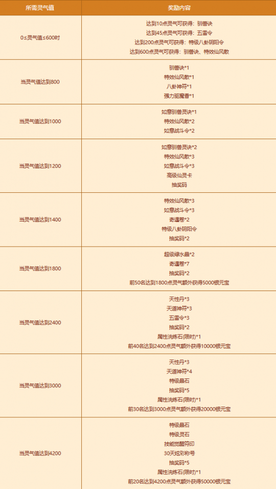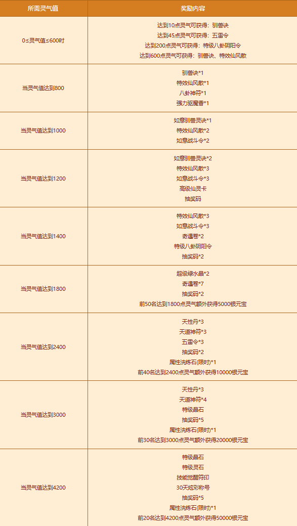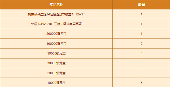来新服刷活跃度、完成活动任务可以获得灵气值 累积灵气值即可领取活动奖励! 还可以抽机械革命星耀14轻薄游戏本、外星人AW920H 三模头戴式电竞耳麦实物大奖! 活动时间 1月9日至2月1日 灵气值获得途径 a.在活动期间玩家完成一次跨服排位赛无论胜负都可获得5点灵气值,共计可获得4次,共计20点灵气值(限制每天只能获得一次); b.在活动期间玩家跨服排位赛段位达到“鹰”一星可获得30点灵气值; c.在活动期间玩家跨服排位赛段位达到“电精”一星可获得40点灵气值; d.在活动期间玩家跨服排位赛段位达到“雷怪”一星可获得60点灵气值; e.每在试道大会的巅峰对决中取得一场战斗胜利,可获得20点灵气值,每期试道大会最多可以获得40点; f.每天会从下列任务中随机选择三个,每完成一个可获得5点灵气值: g.每开启一个专属宝箱可获得2点灵气值,每开启一个高阶宝箱可获得3点灵气值; h.玩家打开活跃度宝箱可获得灵气值,打开50/100/130/160/200活跃度宝箱时,分别可获得2/3/4/5/6点灵气值; i.玩家每日消费100金元宝(仅限商城、鬼斧神工、助力界面)即可获得2点灵气值,每日最多可获得130点灵气值; j.组队争锋: 1)活动期间参与组队争锋,组队成功可获得5点灵气值; 2)在活动期间参与组队争锋且领取到80级组队争锋礼包后,每人可获得5点灵气值; 3)在活动期间参与组队争锋且领取到90级组队争锋礼包后,每人可获得10点灵气值; 4)在活动期间参与组队争锋且领取到100级组队争锋礼包后,每人可获得15点灵气值; 5)在活动期间参与组队争锋且领取到110级组队争锋礼包后,每人可获得20点灵气值; 6)在活动期间参与组队争锋且领取到120级组队争锋礼包后,每人可获得20点灵气值; 7)在活动期间参与组队争锋且领取到130级组队争锋礼包后,每人可获得30点灵气值。 活动奖励 1、当灵气达到规定点数后,点击游戏内右上角“仙玉祈福”小图标,进入活动专属页面领取如下奖励: 2、在活动结束后会对玩家手中的资格码进行抽奖,抽奖奖励如下: 3、灵气值排行奖励: 4、抽奖和排行奖励中的银元宝奖励,可点击游戏内右上角的“仙玉祈福”小图标,进入活动页面领取;实物奖励届时官方会联系获奖玩家发放。 5、若活动时间结束后2个月,实物缺货且官方确认无法发放的,则会安排客服联系获奖玩家提供本人的银行卡相关信息。按照物品最新京东自营或商品自营商城价格折现打款至玩家提供的银行卡中。折现金额为税前,发放时将按照国家税收政策扣除一定比例个人所得税(20%),实际到账的金额为税后。发放时间为回访成功后15个工作日内;若未联系到玩家,则从活动时间结束后1个月的最后一天起计算30天内,玩家未联系我们的,视为放弃奖励不再发放。(注:玩家所提供的银行账户开户人必须和获奖账号的光宇社区真实姓名一致,支行名称必须填写正确。若因账户信息错误、账户姓名不一致等原因导致打款失败,视为放弃奖励,不予补发。) 6、本活动仅在“2026”区组开启。 |