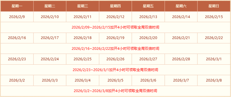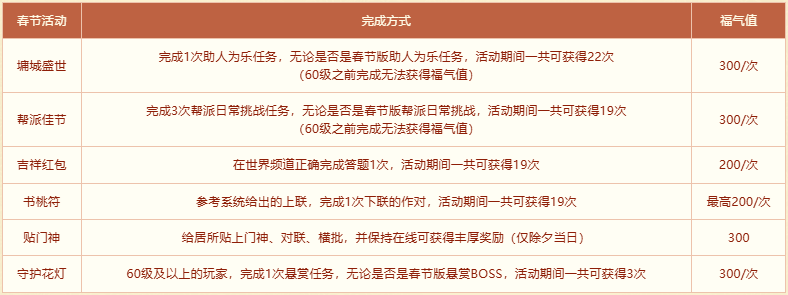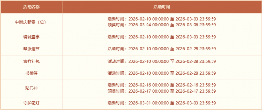 岁岁年年,中洲春节主题活动如期而至。骏马贺岁,中洲启春,好运连连。 佳节活动明天即将盛大开启,这不仅是一场欢庆新春的盛会,更是一次探寻仙途进阶之机的绝佳良机。各位道友,莫要错过这难得的时刻,速来共赴新春之约。 【活动时间】 (普通版&经典版&时间版活动时间安排) (情怀版活动时间安排) 普通版、经典版、时间版的春节系列活动将于明天开启,而情怀版将于2月14日开启春节主题活动,届时欢迎各位情怀版道友前去游戏内畅玩! 【春节六倍】普通版 【春节双倍】经典版&时间版 【春节双倍】情怀版 【活动玩法】普通版&经典版&时间版 活动期间,角色等级≥60级的玩家点击游戏主界面右上角【春】字图标,打开活动窗口,即可参与春节系列活动。 完成每天系列任务,可自动获得对应的福气值奖励。获得的福气值可前往春节集市兑换使用。 普通版、经典版的玩家兑换并使用福气红包,还有机会获得八阶坐骑逍遥鹤、银元宝和商城道具奖励! 【活动玩法】情怀版 活动开始后,角色等级≥40级的玩家将自动获取春节系列任务。完成春节系列活动时除道具奖励外,将有一定几率获得【福】、【禄】、【寿】、【喜】、【财】五种新春贺帖。提交新春贺帖,换取对应奖励。 |
