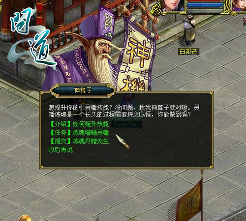 在《问道》1.491中道友找到了可以找到一个助道友修仙得道的方法——引灵幡。传说中,引灵幡是能将大千万物的特殊法力附着于降魔除妖的法器之上的特殊宝物。
