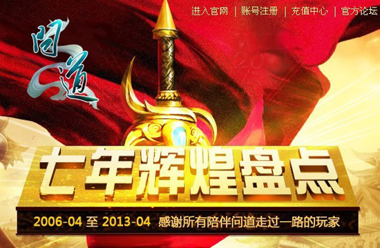 2013年,《问道》七岁了,感谢所有道友一路相随,成就《问道》一个又一个辉煌篇章。北京古都的巅峰道王,黄埔风云的团结逆袭,避暑山庄的惊世之战,你们血染征跑,捍卫荣耀!