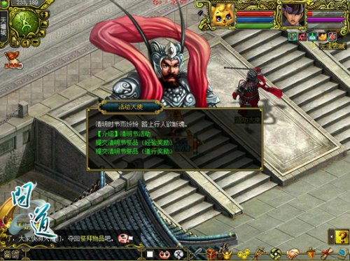 活动期间,玩家上线即可获得“清明祭扫”的任务。在天墉城、无名小镇会刷新出元宝窃贼、香烛窃贼、黄纸窃贼,击败他们可获得清明的祭拜用品。向窃贼提交一瓶老酒,可以引诱出窃贼首领,战胜可以获得丰厚的奖励,但窃贼首领只可一个人挑战。完成活动可获得丰厚的经验、道行等数值奖励。