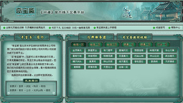 淘奇货,有诀窍,奇宝斋,让你购物安全又快速!在经典2D回合网游《问道》,奇珍异宝数不胜数,玩家们对宝物追求的热度又是节节高升,同时害怕繁琐的交易手段并且存在风险。现在好了《问道》奇宝斋购物平台就彻底实现了购物交易无障碍,并且新开通了预定功能让道友们抢占先机! 《问道》三界封神客户端下载:http://wd.gyyx.cn/download 《问道》三界封神微端下载:http://hd.gyyx.cn/gameDownload/Default.aspx?typeid=13&netType=1&file=asktao_mini_setup.exe 《问道》三界封神官方网站:http://wd.gyyx.cn